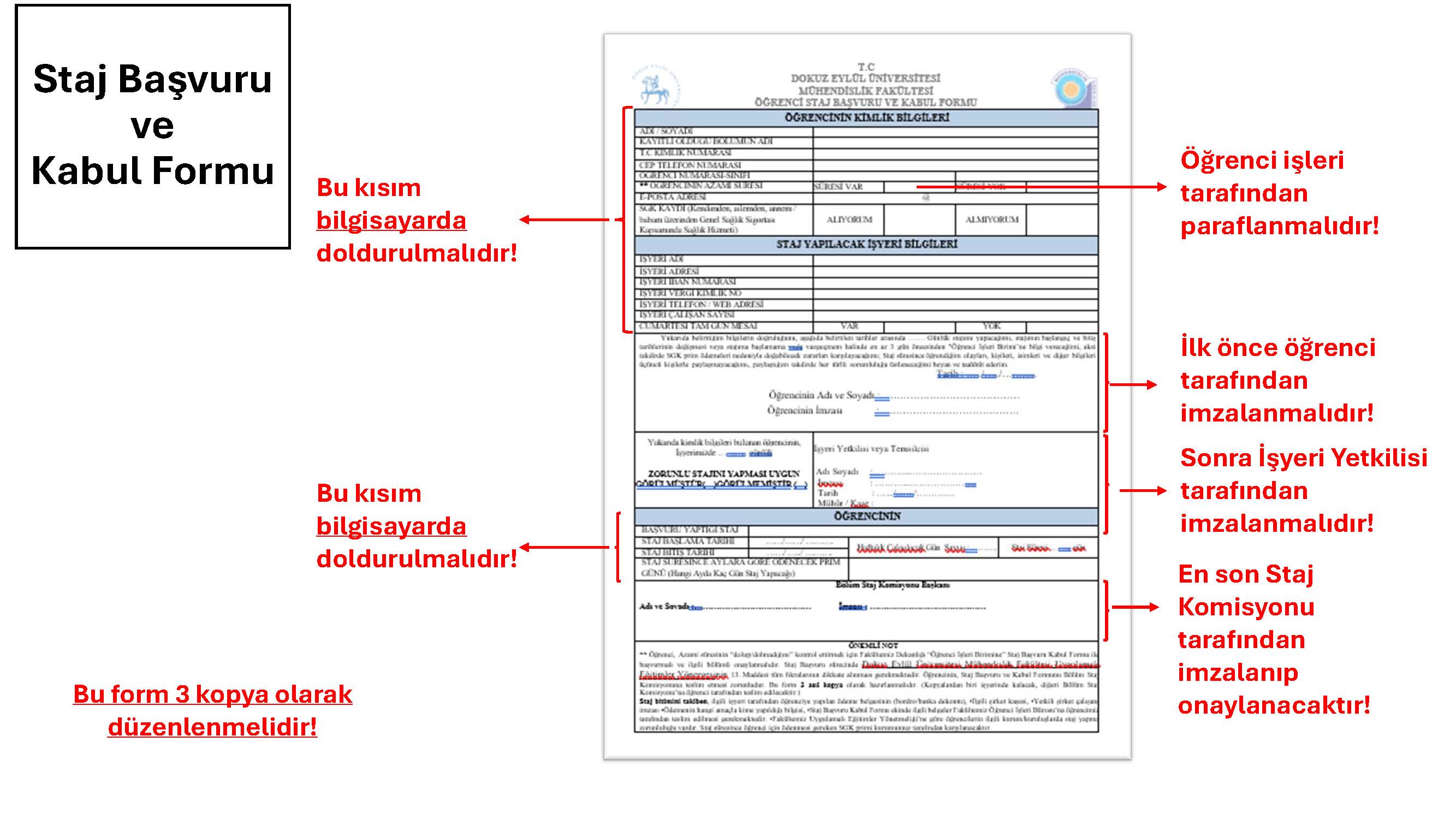 “Staj Başvuru ve Kabul Formu”, staj yapılacak yer belli olduktan sonra üç nüsha olarak